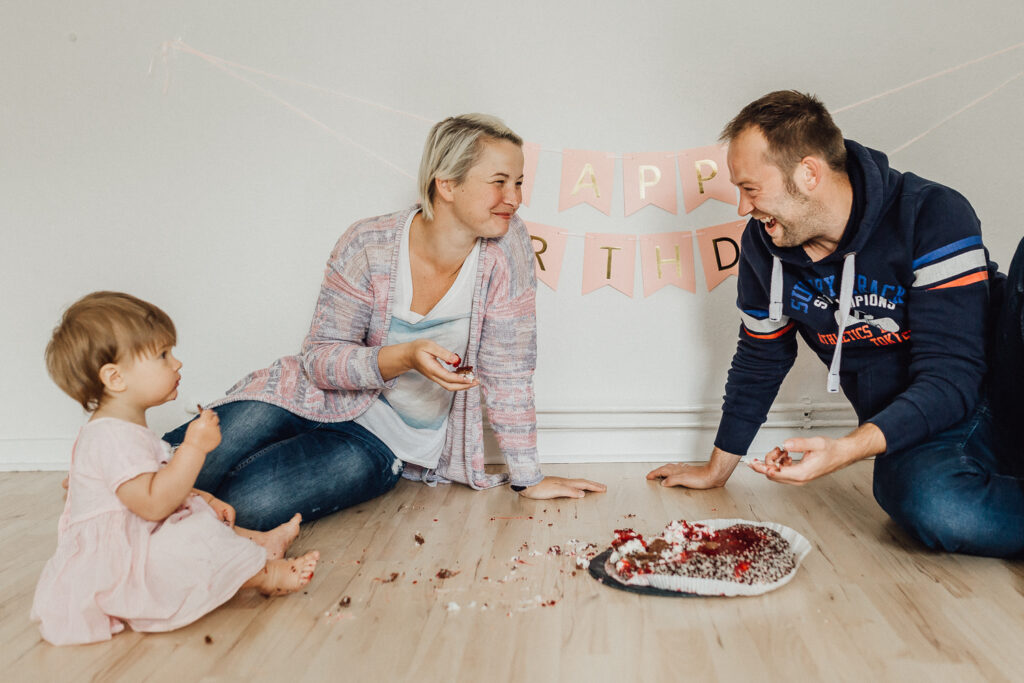 Da wurde erstmal vorsichtig probiert und getestet und an die Eltern gegeben. Das hat sie auch bis zum Ende durchgehalten, sodass die Eltern am Ende fast mehr gematscht haben als ihre Kleine, als wir am Ende noch ein paar Familienbilder dabei gemacht haben.