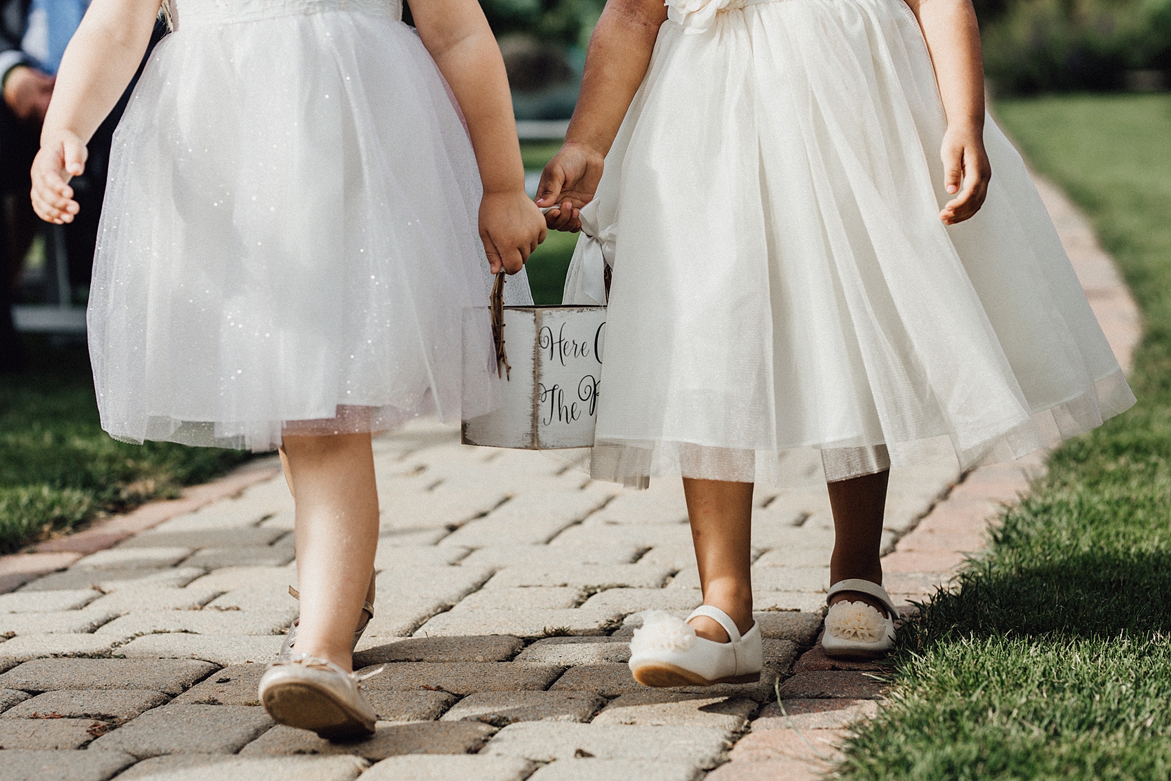 Der Ort der Trauung war sehr liebevoll und stilvoll hergerichtet und enthielt z.B. das Holzschild mit dem Dan seiner Erin den Heiratsantrag gemacht hatte. Als alle Gäste saßen begann der Einzug aller Beteiligten. Zunächst der Bräutigam und dann paarweise immer ein Groomsman und eine Bridesmaid zusammen und zum Schluss die zwei süßen Blumenmädchen.