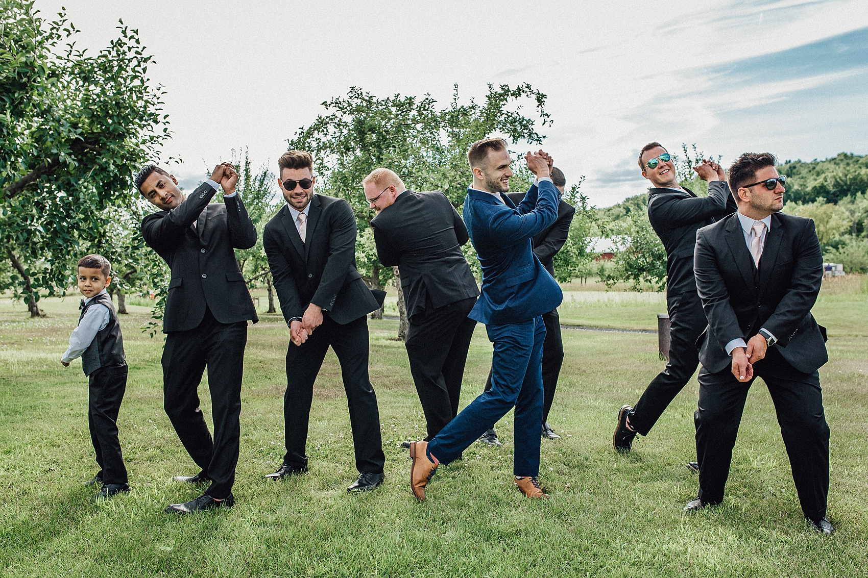 Als dann auch die wunderhübsche Braut fertig war, ging es zum Fotos machen nach draußen. Nach den Mädels folgten dann die Gruppenfotos der Männer. Da Erin und Dan an einem Golfplatz heirateten und Dan leidenschaftlicher Golfer ist, durfte natürlich ein Gruppenfoto ganz zu diesem Thema nicht fehlen!