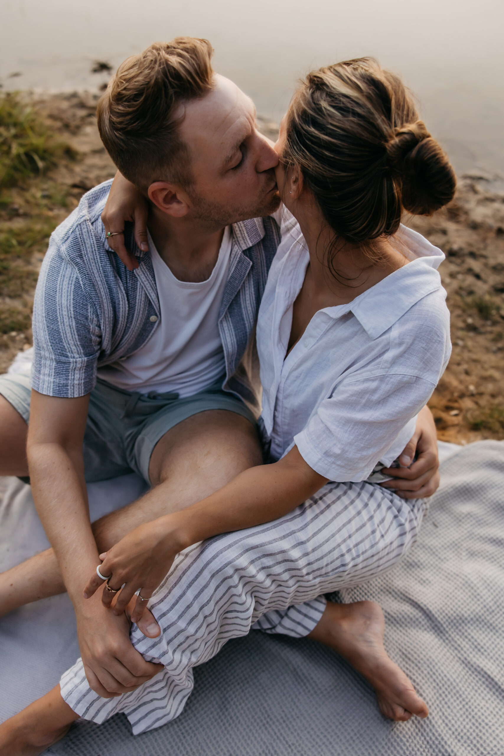 Barfuß im Sand, das ruhige Wasser im Hintergrund und das weiche Licht des Sonnenuntergangs schufen eine intime, ungezwungene Atmosphäre. Statt klassischem Posing ging es um echte Nähe, gemeinsame Zeit und kleine Momente, die sich leicht und authentisch anfühlen.