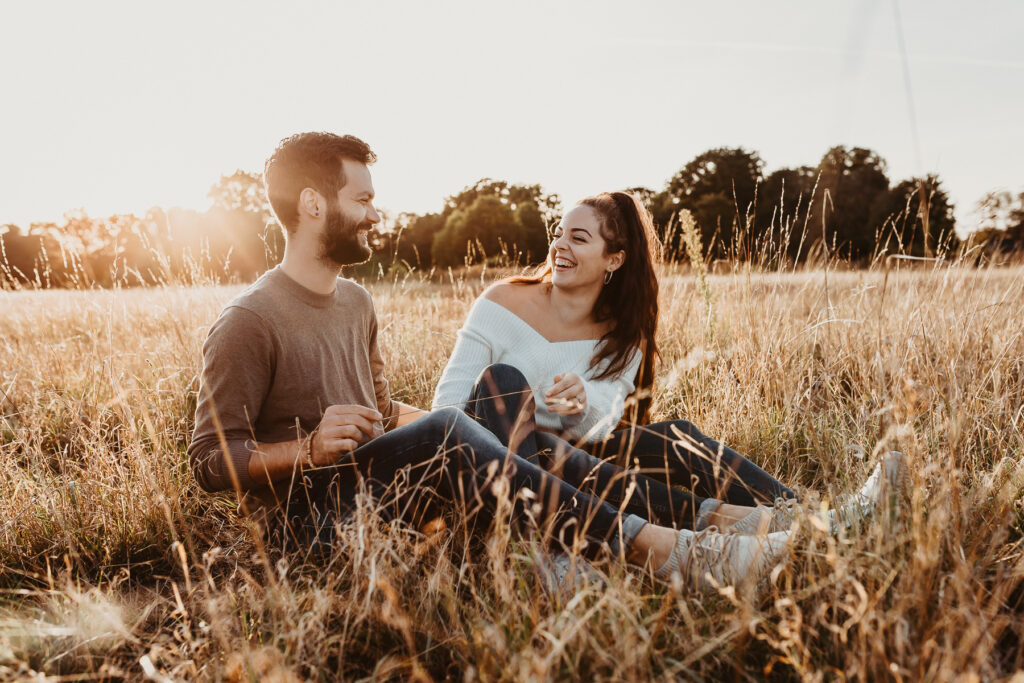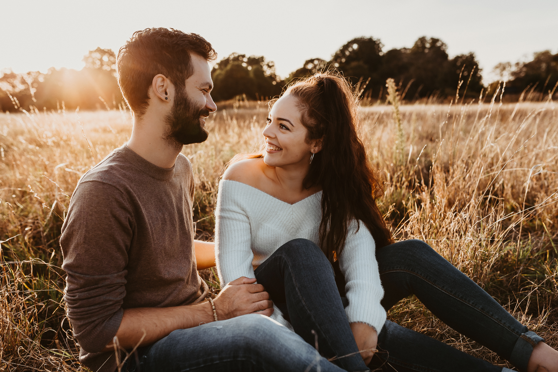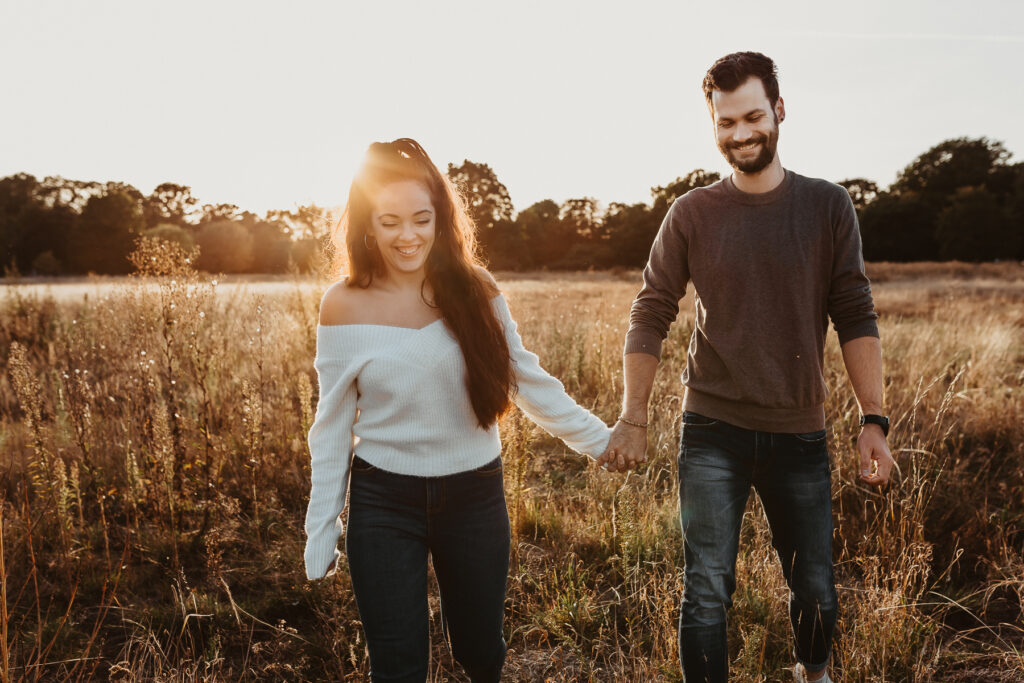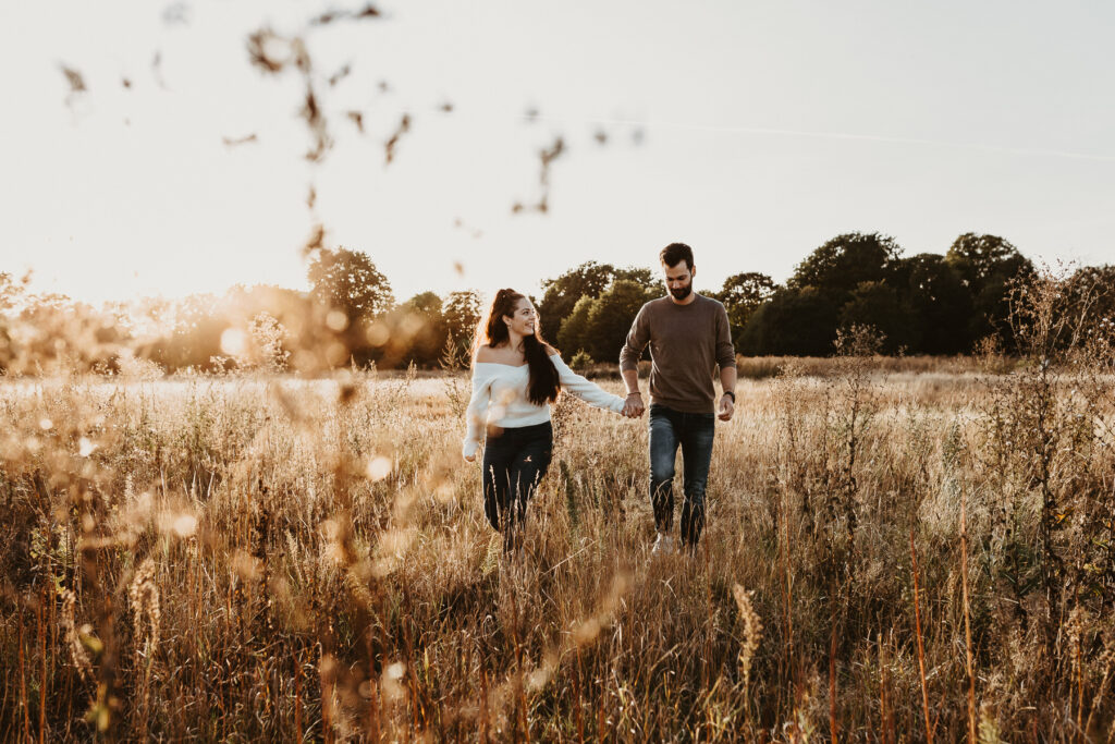 Willkommen zu diesem wunderbaren Herbst-Shooting für Verlobungsfotos. Wir haben uns am frühen Abend auf einer großen Wiesenfläche in Hannover getroffen und dadurch diese magische, goldene Lichtstimmung bekommen.