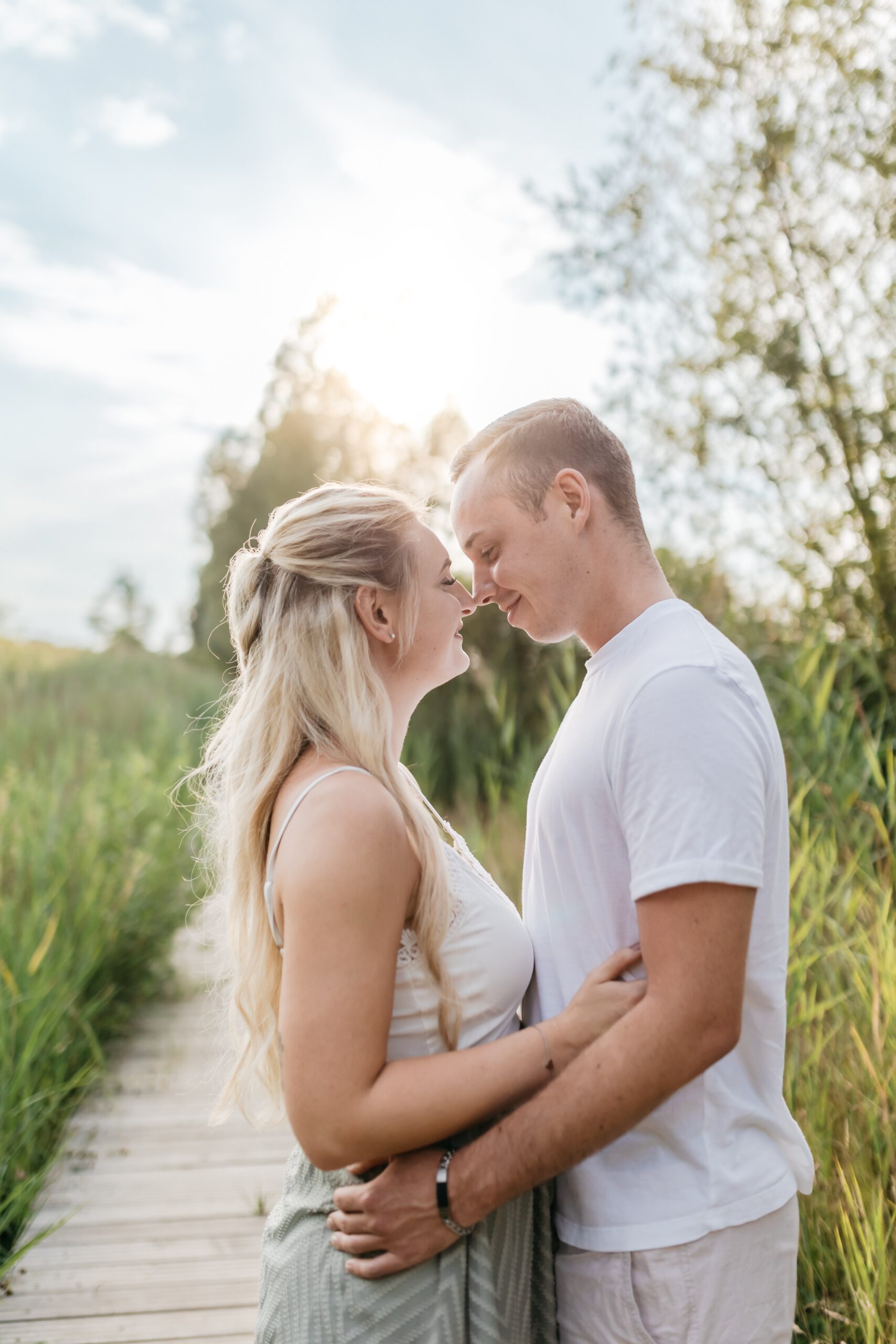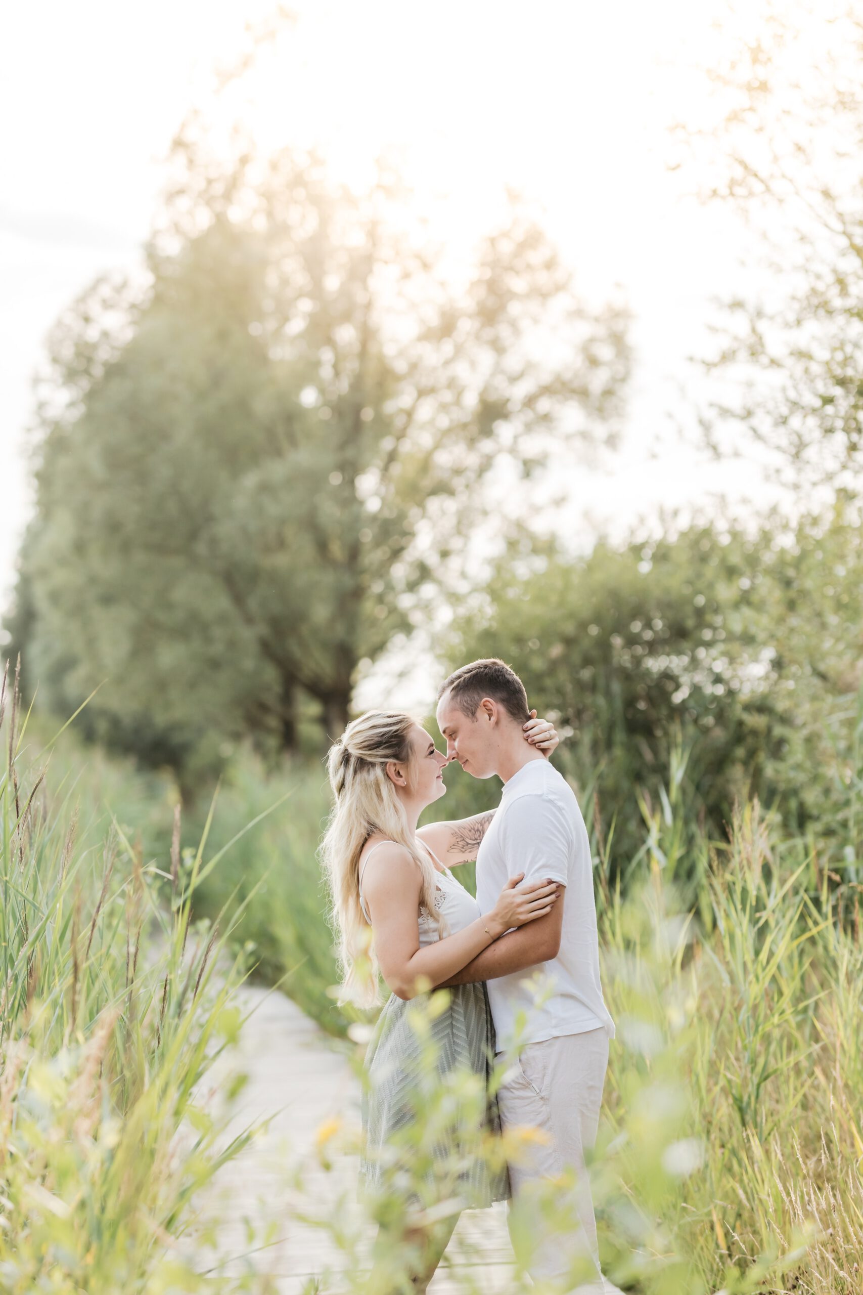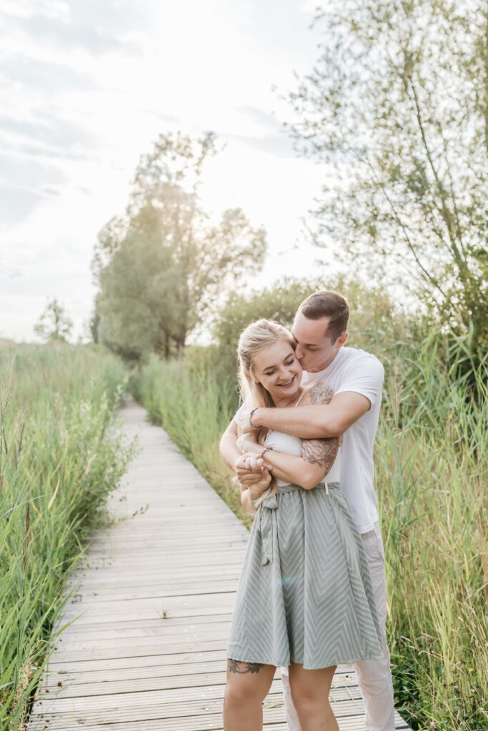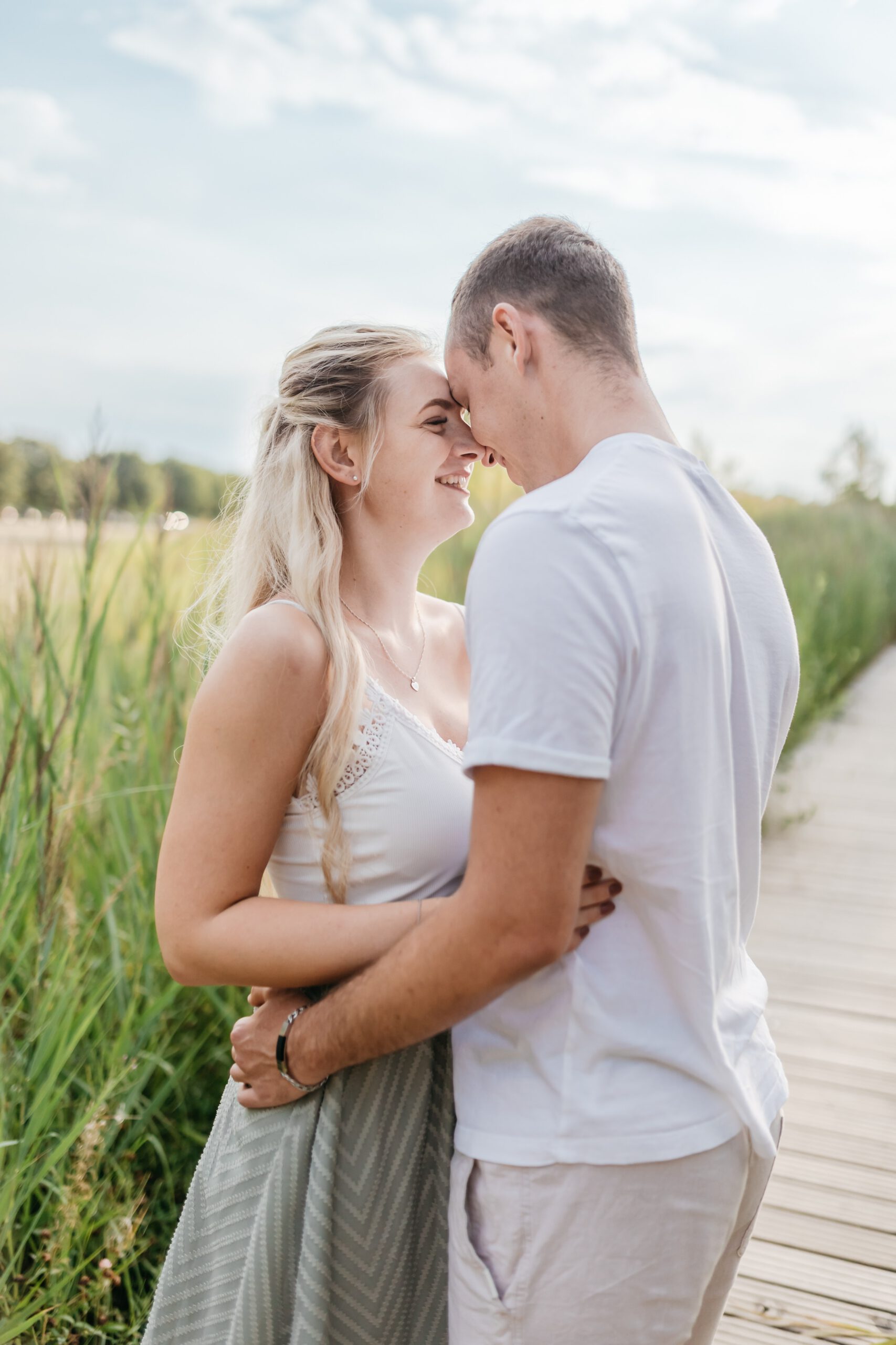 Ich habe mich mit den Beiden zum Kennenlern-Vorgespräch getroffen, um über ihre Hochzeit 2023 zu sprechen. Das haben wir auch gleich damit verbunden Verlobungsfotos zu machen. Es ist eine super Möglichkeit, um sich schon mal an die Kamera zu gewöhnen und um einen noch persönlicheren Draht zwischen uns Dreien aufzubauen. Das macht die Fotosession am Hochzeitstag dann umso entspannter.